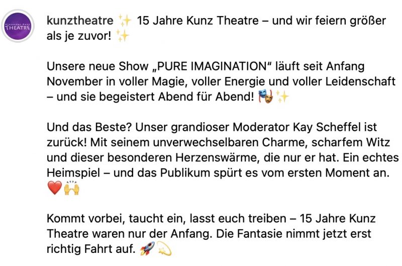 Kay Scheffel ist derzeit auf folgenden Bühnen zu sehen